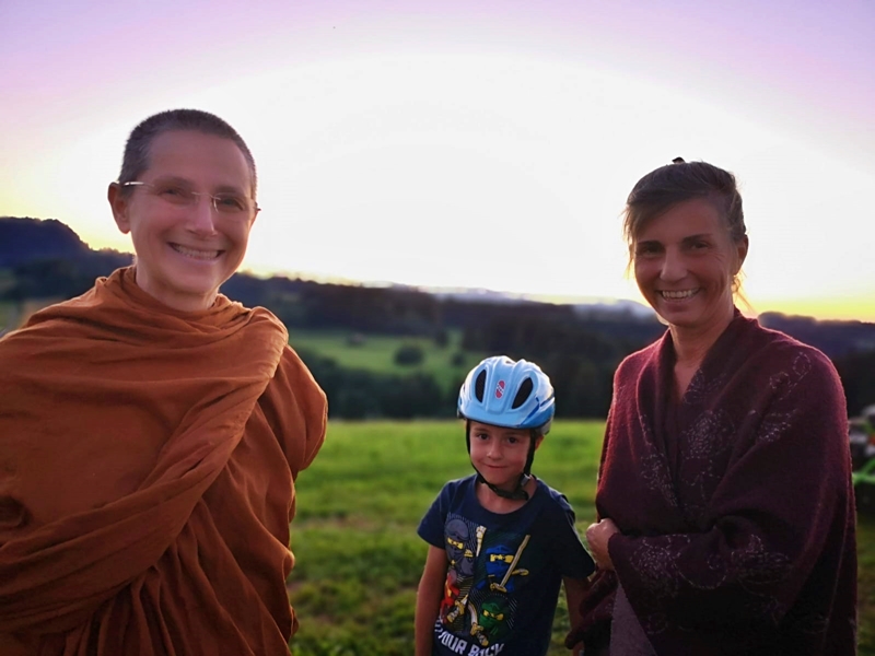 Am letzten Abend unserer Vinayaklausur, zudem uns auch Nonnen aus anderen Klöstern (und Ländern) besucht haben, ergab es sich, dass die Klostergemeinschaft mit der Dorfgemeinschaft eine Linde in einem Steinkreis pflanzen konnte. Wir sind sind wirklich glücklich in so guten Gemeinschaften leben zu dürfen. Das Licht an dem Abend war ganz besonders.